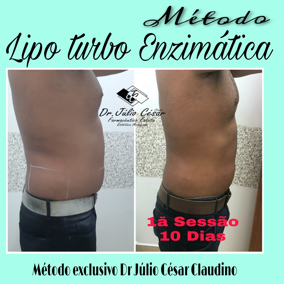 Lipo turbo enzimática método exclusivo criado por dr Júlio César, o método consiste na aplicação de enzimas específica para cada paciente.